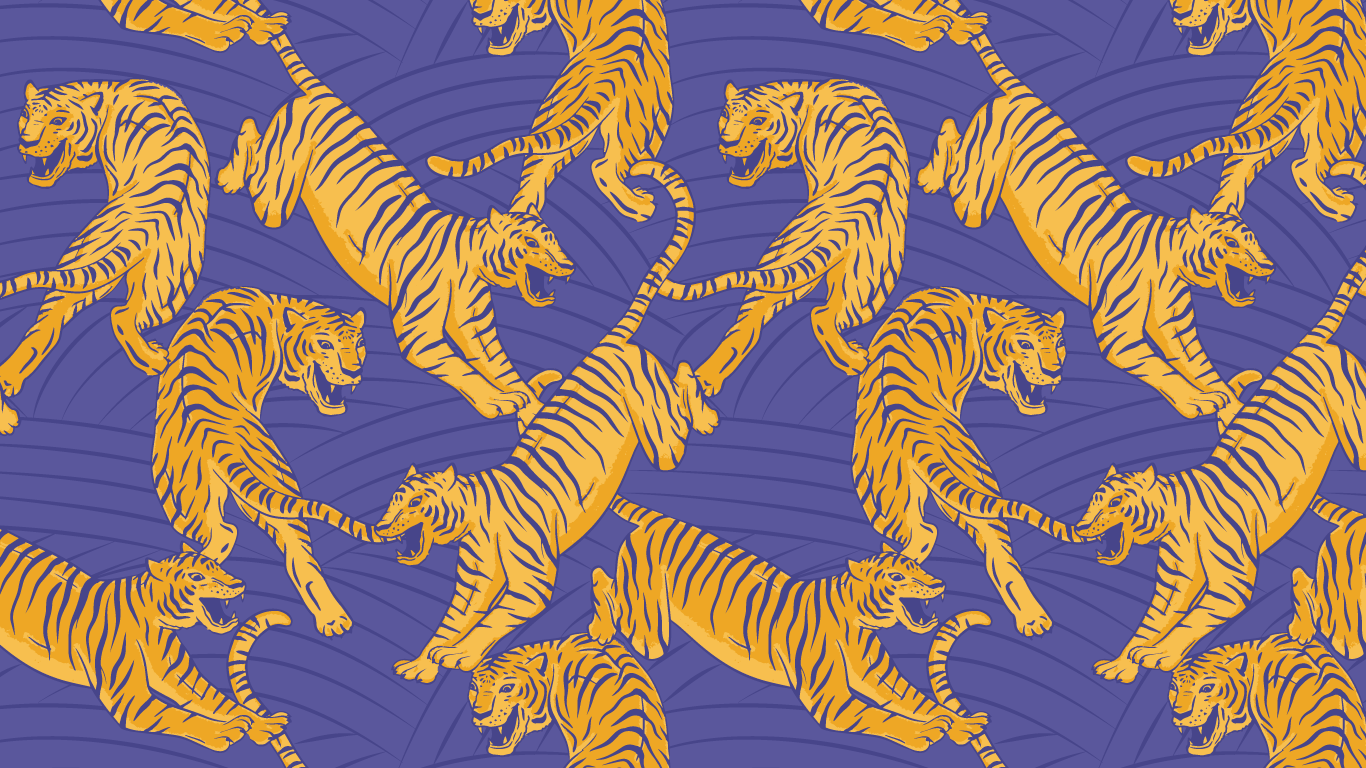 LSU Tigers print loosely based on tattoo art. Used on swim trunks and polos